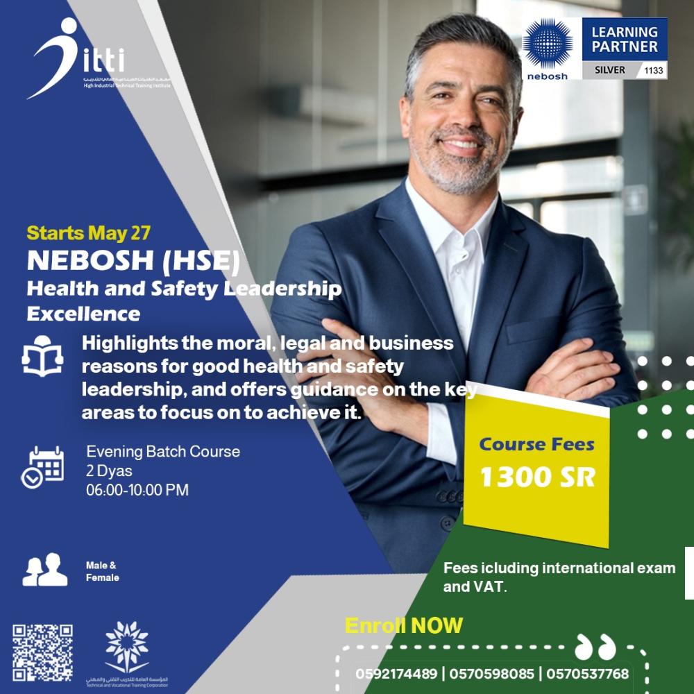 برنامج قيادة السلامة والصحة المهنية من NEBOSH (HSL) مصمم لتمكين المدراء والقادة من تطوير مهارات القيادة اللازمة لتحسين السلامة والصحة المهنية في مكان العمل. يركز البرنامج على دور القيادة في خلق ثقافة السلامة والصحة وتحقيق التميز في هذا المجال.